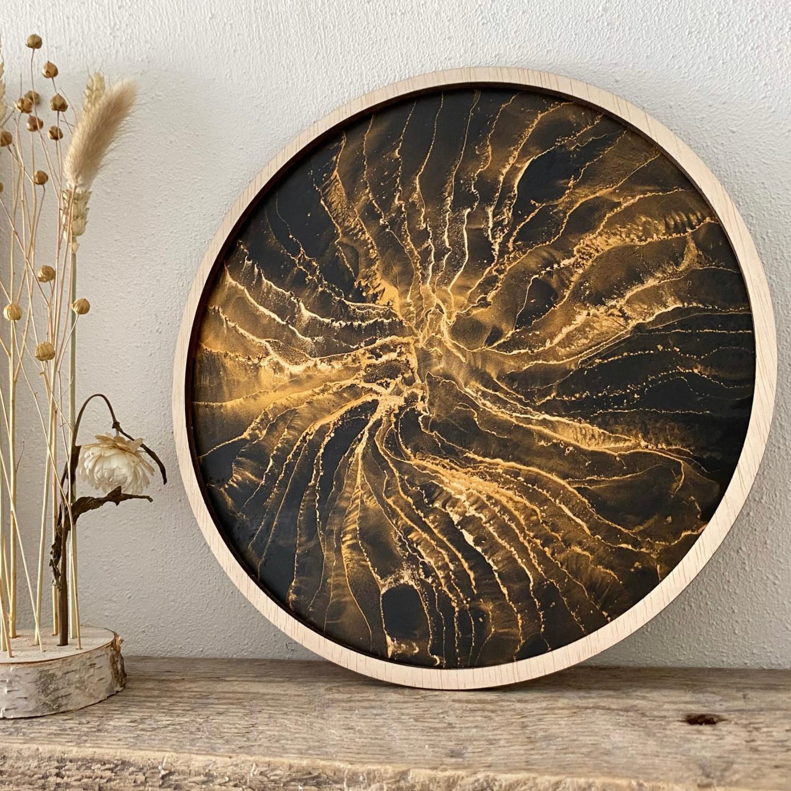 - Material: Alcohol inks on synthetic paper, protected with (UV) varnish