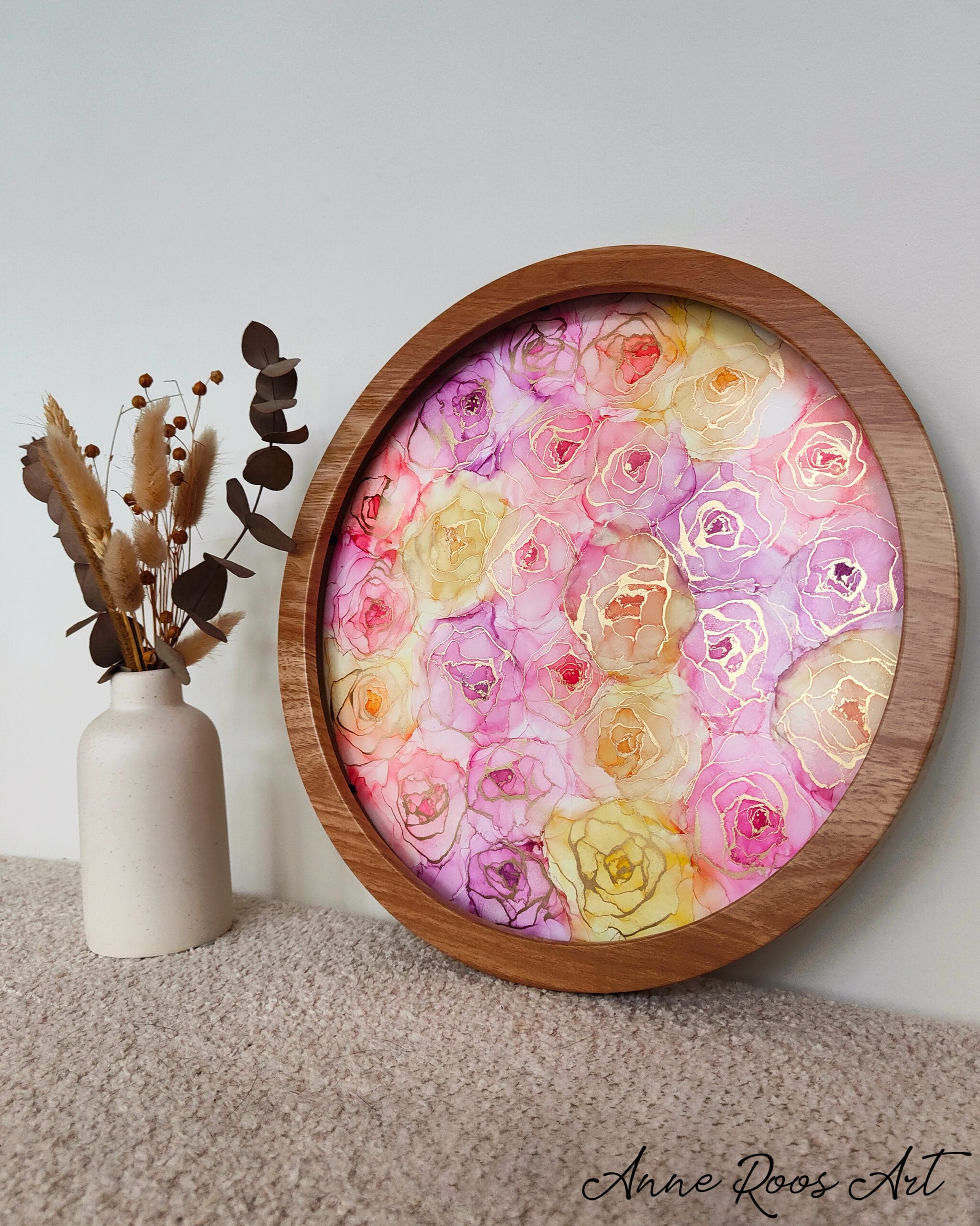Pastel Bouquet of Roses is an original artwork with my signature roses. This pastel color palette beautifully blends into each other forming a bouquet of soft pastel-colored roses and shimmering gold accents that will beautifully reflect in daylight. A true eye-catcher for any living room, bedroom or study. Match this artwork with a beautiful Christmas ornament in the same style.